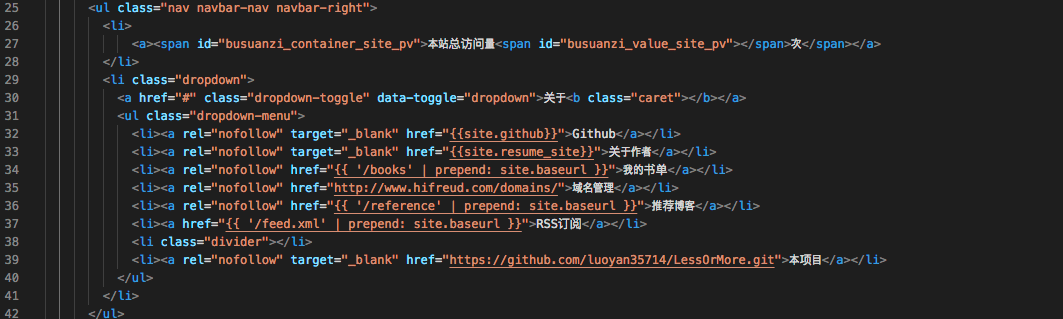 25-42 라인에 있는 <ul class="nav navbar-nav navbar-right">구문은 난 쓰지 않는거라 여기고 삭제하였다.